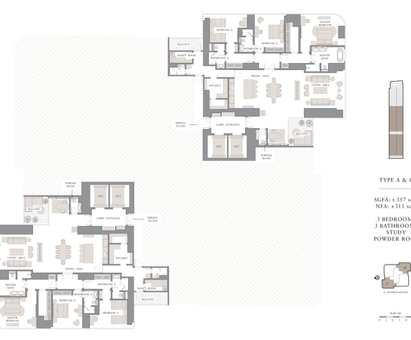 Sky Residence Type A & C (left) and Sky Residence Type B & D (right)