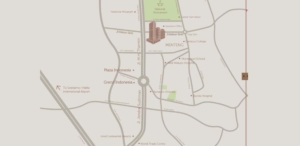 Rising proudly along Jalan Kebon Sirih in the affluent and strategically-located Menteng neighbourhood, The Stature illuminates the surrounding area with its majestic style and dignified architecture. Exuding grandeur and elegance from every angle, each tower provides impressive city views extending towards the National Monument of Indonesia, the central business district and the iconic Jakarta city skyline.